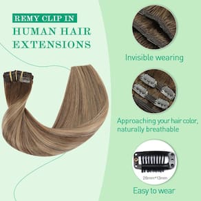 Clip in Human Hair Extensions SURNEL 140 g 7 unidades 40 cm 7C #4 /27/4