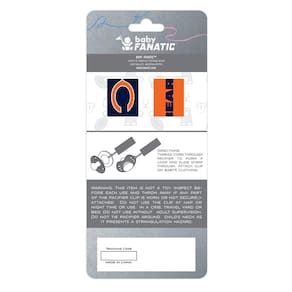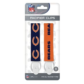 Pacote com 2 clipes de chupeta BabyFanatic — NFL Chicago Bears — Vestuário para bebês oficialmente licenciado — 2 clipes de chupeta Chicago Bears; produto licenciado oficialmente pela NFL — Apresenta o logotipo e as cores favoritas do time em ambos os lados com clipe de plástico e adorno de feltro bordado — Ajuste universal para qualquer chupeta — O cordão anexado é longo o suficiente para lidar com qualquer chupeta — Baby Fanatic — Principal fabricante de produtos oficialmente licenciados pela NFL, MLB, NBA e Produtos universitários para bebês e crianças pequenas