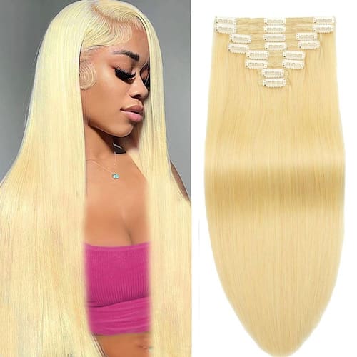 Clipe de extensões de cabelo em cabelo humano Bleach Blonde 105g 50cm