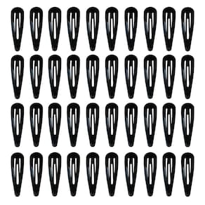 Pacote: 40 peças de clipes todos pretos. - Pacote com 40 clipes de pressão de metal, todos na cor preta. - Tamanho - O grampo de cabelo mede 4,7 cm de comprimento (4,7 cm) e 0,6 polegadas de largura - Os clipes básicos de design simples mantêm o cabelo firme sem escorregar, não embaraçam o cabelo. - Superfície lisa - processo de artesanato revestido, fácil de fixar ao cabelo.