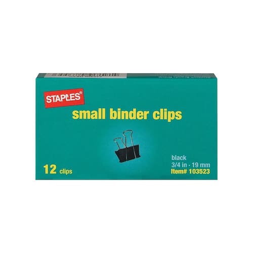 Evite que os papéis v com este pacote de 12 pequenos clipes de fichário pretos com capacidade de 0,75 x 0,38 polegadas da Staples. Contém formulários e documentos com esses pequenos clipes de fichário Staples. Cada clipe inclui alças convenientes que se dobram para pendurar, enquanto o material durável oferece uma aderência robusta, para que você possa manter a papelada solta organizada e bem unida. Esses pequenos clipes de fichário Staples vêm em um pacote de 12, facilitando ter sempre um à mão. Os clipes de fichário oferecem uma maneira simples de manter documentos soltos juntos em um só lugar. Largura: 0,75". A capacidade de 0,38" garante que os documentos relacionados permaneçam juntos. Preto e feito de metal para maior durabilidade. Esses clipes são vendidos em pacotes convenientes de 12.