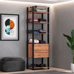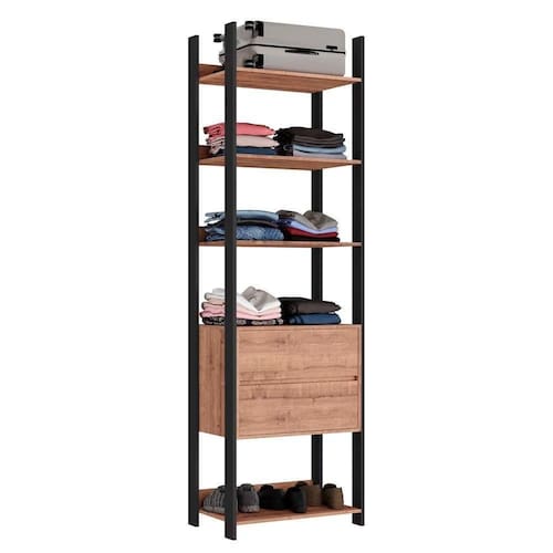 Se você gosta do objetivo e funcional, oguarda roupa closet é a personificação desse conceito! Ele possui estrutura em MDP de qualidade, com acabamento em pintura BP fosco que além de garantir durabilidade e resistência o produto, ainda contribui para um design moderno no famigeradoestilo industrial! Inclusive, conta com 4 prateleiras formando nichos para deixar suas roupas favoritas sempre à disposição e 2 gavetas para acessórios ou itens conforme sua necessidade! Me diz, essecloset é um complemento imperdível né?