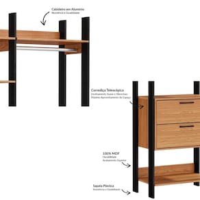 Closet 2 Torres 2 Gavetas Industrial TW403 Freijó Preto Fosco Dalla Costa - Freijó | Preto