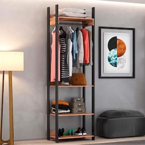 Se você gosta do objetivo e funcional, o guarda roupa closet é a personificação desse conceito! Ele possui estrutura em MDP de qualidade, com acabamento em pintura BP fosco que além de garantir durabilidade e resistência o produto, ainda contribui para um design moderno no famigerado estilo industrial! Inclusive, conta com 4 prateleiras formando nichos e possui cabideiro para deixar suas roupas favoritas sempre à disposição! Me diz, esse closet é um complemento imperdível né?