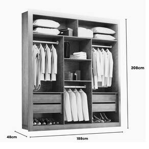 Dimensões do Closet: Altura: 208 cm Largura: 188 cm Profundidade: 48 cm