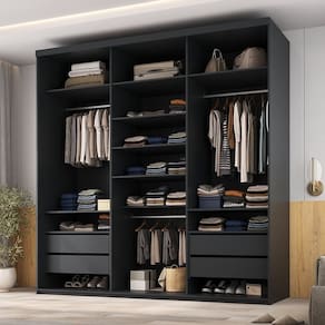 Conheça o Closet Moutier, a escolha perfeita para quem deseja unir elegância e funcionalidade. Produzido com materiais de alta qualidade, o Closet Moutier é fabricado em painéis de MDF de 1,5cm com acabamento melamínico em baixa pressão, garantindo alta resistência e durabilidade. Conta com corrediças telescópicas, proporcionando um deslizamento suave e seguro das gavetas para mais conforto no dia a dia. Seu design inteligente oferece amplo espaço interno e uma distribuição bem planejada, facilitando a organização e o acesso às suas roupas e acessórios. Ideal para quem busca praticidade sem abrir mão do bom gosto. Adicione o Closet Moutier ao seu quarto e transforme seu ambiente! Acabamento da Prateleira: BP Melamínico Escala de Brilho da Prateleira: Fosco Possui Cabideiros: Sim Acabamento da Gaveta: BP Melamínico Escala de Brilho da Gaveta: Fosco Possui Organizador de Gaveta: Não Acabamento dos Pés: BP Melamínico Altura dos Pés: 5 cm Ambiente Principal: Quarto codigo_ean: 7900288072009 Complexidade da Montagem: Alta: deve ser montado por um montador especializado Cor: Preto Cor do Produto: Preto Cor Interna: Preto Escala de Brilho: Fosco Espessura da Estrutura (mm): 15 mm Espessura das Prateleiras (mm): 15 mm Espessura do Fundo (mm): 3 mm Espessura do Fundo das Gavetas (mm): 3 mm Itens Inclusos: 1 Closet + 1 Manual de Montagem Linha ou Coleção: Moutier Manual de Montagem e Instalação: https://product-hub-prd.madeiramadeira.com.br/977105/documents/afa83c0a-7a7f-4b15-890c-8f85a3aebdd027026429451740005650835.pdf Marca: RR Móveis Material da Gaveta: MDF Material da Prateleira: MDF Material dos Pés: MDF Material Principal: MDF modular: Não Necessita Montagem: Sim Origem do Produto: Nacional Peso: 160 kg Peso Máximo por Gaveta: 10 kg Peso Máximo por Prateleira: 10 kg Possui Calceiros: Não Possui Espelho: Não Possui Pés: Rodapé Possui Portas: Não Possui Prateleiras: Sim Produto Montado: Sim Quantidade de Cabideiros: 03 Cabideiros Quantidade de Gavetas: 04 Gavetas Quantidade de Prateleiras: 09 Prateleiras Recomendações de Uso, Manutenção e Limpeza: Pano Umido Sistema de Montagem: Parafusos e Cantoneiras Tipo de Corrediça da Gaveta: Metálica Telescópica Tipo de Gaveta: Interna Tipo de Guarda-Roupa: Closet Tipo de Puxador da Gaveta: Não Possui Marca: RR Móveis