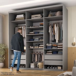 Closet Casal 100% Mdf 208cm 4 Gavetas Moutier Urbi - Cinza
