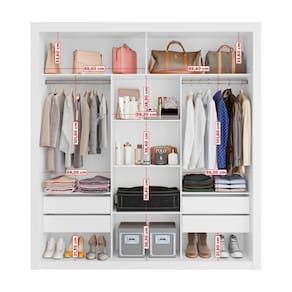 O Closet Casal Amoudi Móveis possui 2,08m de altura, 1,93m de largura e 46,1cm de profundidade de forma a oferecer ao seu quarto otimização e muito espaço. Conta com dois cabideiros e quatro gavetas com corrediças metálicas, um maleiro superior muito espaçoso e nichos inferiores ideais para manter os calçados sempre à mão. Além disso, conta também com uma torre central com 3 prateleiras muito espaçosas para você distribuir seus itens de forma prática e organizada. Não possui portas.