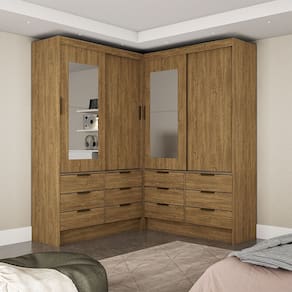 Observa??es: As dimens?es apresentadas referem-se a um m?dulo, sendo importante destacar que o Closet Casal Duplo Sevilha 4 Portas, 12 Gavetas e 4 Espelhos consiste em 2 m?dulos em um ?nico produto. Ele pode ser montado em L, de forma linear ou em paredes distintas, adaptando-se perfeitamente ao seu espa?o. Marca: Carioca Móveis Marca: Carioca Móveis