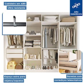 - Peso Suportado nas Gavetas (Kg): 10 Kg
