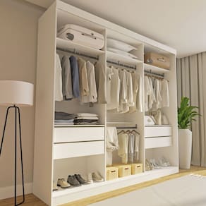 O Closet Paris vai manter o seu quarto arrumado e com uma decoração moderna! Confeccionado com matérias de qualidade, ele possui 4 gavetas com corrediças metálicas, garantindo assim a resistência ao abrir e fechar. Suas prateleiras são espaçosas e vão deixar as suas roupas sempre à mão. Demais não é? Leva!