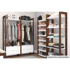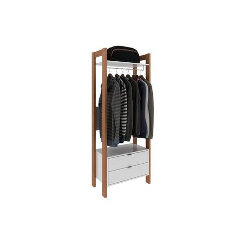 Closet de Quarto AZ1011 Armário Alto c/ 1 Prateleira e 2 Gavetas Amêndoa/Branco - Tecno Mobili
