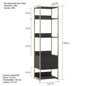 Closet Estante Industrial 2 Gavetas 5 Prateleiras Preto - Olivar Móveis
