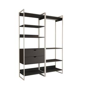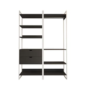 Closet Industrial Casal Loft 2 Módulos Preto Cabideiro com Gavetas Ferro Branco