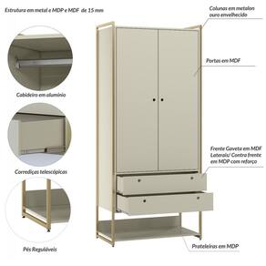 O Closet Ind. Olivar-Módulo 05 é um produto que mostra uma diversidade de materiais, com metal nas laterais e MDF e MDP de 15 mm. Ele possui 1 prateleira para acomodar objetos, calçados ou roupas, duas portas e um cabideiro de alumínio, duas gavetas com corrediças telescópicas, um detalhe usinado na frente da gaveta e das portas para servir como puxador e possui pés reguláveis para facilitar nos desníveis dos pisos. Este produto é ideal para quarto que poderá também juntar-se com outros módulos da Olivar Móveis e montar um Closet maior onde irão acomodar tudo que você precisa. É um produto com design de uma pegada industrial para quem gosta do estilo mais urbano e contemporâneo onde você personaliza seu ambiente deixando-o exclusivo. Acabamento da Gaveta: Acetinado Acabamento da Porta: Acetinado Acabamento da Prateleira: Acetinado Acabamento dos Pés: Pintura Altura dos Pés: 4 Ambiente Principal: Quarto Complexidade da Montagem: Alta: deve ser montado por um montador especializado Composição: 80% MDP 20% MDF Cor: Off White AC Cor do Produto: Off White Ac Cor Flex: NÃO Cor Interna: Bege Escala de Brilho: Semi-Brilho Gaveta com Chave: Não Itens Inclusos: 01 CLOSET, MANUAL DE MONTAGEM E KIT DE FERRAGENS Linha ou Coleção: INDUSTRIAL Manual de Montagem e Instalação: https://product-hub-prd.madeiramadeira.com.br/896423/documents/f8087b6b-e0ff-4633-ae54-e262748508dcexpclosetindolivarmodulo05.pdf Material da Gaveta: MDF/MDP Material da Porta: MDF Material da Prateleira: MDP Material dos Pés: PVC Material Principal: MDF/MDP Módulo Individual: Sim Necessita Montagem: Sim Origem do Produto: Nacional Pés Reguláveis: Sim Peso: 60,4 kg Peso Máximo por Gaveta: 2 Peso Máximo por Prateleira: 4 Possui Cabideiros: 01 Possui Calceiros: Não Possui Espelho: Não Possui Possui Pés: 04 Possui Portas: 02 Possui Prateleiras: 01 Possui Rodízio: Não Recomendações de Uso, Manutenção e Limpeza: PANO ÚMIDO.NÃO APLICAR LUSTRA MÓVEIS Sapatas Niveladoras: Não Sistema de Montagem: Parafusos, Minifix, Cavilhas e corrediças Suporta Até (kg): 30 Tipo de Corrediça da Gaveta: Metálica Telescópica Tipo de Dobradiça/Corrediça da Porta: Metálica Tipo de Puxador da Gaveta: Embutido Tipo de Puxador da Porta: Interno
