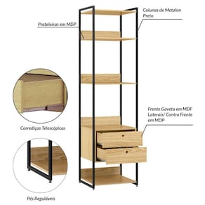 Este é o Conjunto de Closet Ind. Olivar-Módulos 04 e 03, produto que mostra uma diversidade de materiais, com metal nas laterais, MDF e MDP de 15 mm. Ele possui enbsp;prateleiras para acomodar objetos ou roupas, cabideiro em alumínio, enbsp;gavetas e porta com corrediças e dobradiças metálicas, tudo com design de uma pegada industrial para quem gosta do estilo mais urbano e contemporâneo onde você personaliza seu ambiente deixando-o exclusivo.