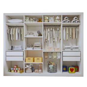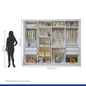 Bem-vindo ao closet infantil dos sonhos para os pequenos aventureiros! Nosso guarda-roupa Closet é como uma mágica, onde cada roupa, sapato e brinquedo tem seu espaço especial. As prateleiras espaçosas são a solução perfeita para manter tudo no lugar sem perder o estilo e ajudando na correria do dia a dia. Certeza que vai transformar o quarto dos seus filhos em um verdadeiro mundo mágico da organização!