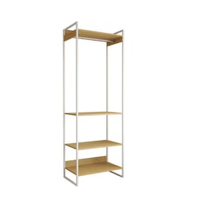 Closet Modulado Estilo Industrial Solteiro Loft Canela Cabideiro Ferro Branco - Marrom
