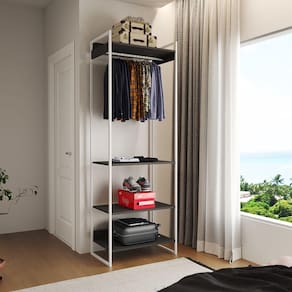 Closet Modulado Estilo Industrial Solteiro Loft Preto Cabideiro Ferro Branco
