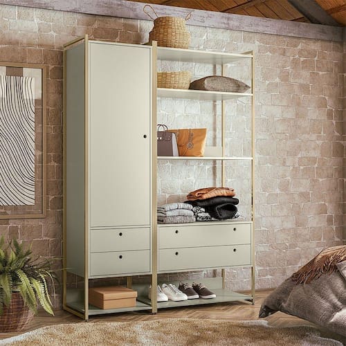 Closet Modulado Industrial Quarto Solteiro 143cm - Off White - Cor: Off White