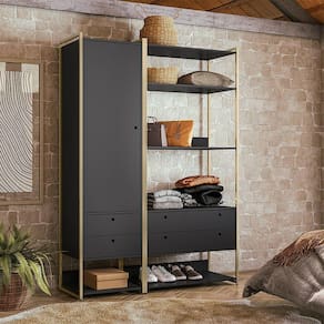 Closet Modulado Industrial Quarto Solteiro 143cm - Preto - Cor: Preto