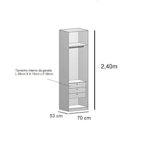 A linha modulada Altezza é a opção ideal para você organizar o seu cômodo da forma que quiser, otimizando os espaços com móveis sofisticados, resistentes e de qualidade! O Closet com Gavetas 70cm Altezza é produzido 100% em MDF de 15cm (estrutura, gavetas e divisões internas) e pintura texturizada com 7 camadas (que confere maior resistência à riscos e batidas). Com design inspirado nas tendências dos móveis planejados, seu grande diferencial é a altura de 2,40m (uma das maiores do mercado) e sua excelente divisão interna para melhor organização e disposição dos seus pertences. As gavetas são equipadas com corrediças telescópicas, que garantem melhor deslizamento e maior durabilidade.