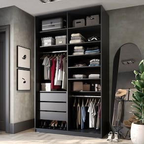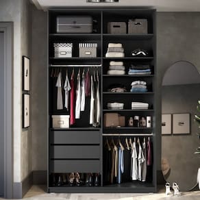 Conheça o Closet Sion, a solução perfeita para quem busca combinar estilo e funcionalidade. Fabricado com materiais de alta qualidade, o Closet Sion é todo produzido em painéis de 15mm com acabamento melamínico em baixa pressão, garantindo resistência e durabilidade prolongadas. Seu design inteligente oferece amplo espaço e uma distribuição interna bem planejada, facilitando a organização e o acesso às suas roupas e acessórios. Ideal para quem valoriza a praticidade sem abrir mão da elegância. Adicione o Closet Sion ao seu quarto e transforme seu espaço! Acabamento da Gaveta: BP Acabamento da Prateleira: BP Acabamento dos Pés: BP Altura dos Pés: 5 cm Ambiente Principal: Quarto Complexidade da Montagem: Alta: deve ser montado por um montador especializado Composição: 100% MDP Cor: Preto Cor do Produto: Preto Cor Interna: Preto Escala de Brilho: Fosco Escala de Brilho da Gaveta: Fosco Escala de Brilho da Prateleira: Fosco Espessura do Material da Estrutura: 15 mm Gaveta com Chave: Não Itens Inclusos: 1 Closet e Manual de montagem Linha ou Coleção: Sion Manual de Montagem e Instalação: https://product-hub-prd.madeiramadeira.com.br/899948/documents/a8e2c08f-6f98-458f-b48f-80d9cb6eb64d199724794517171001484966.pdf Material da Gaveta: MDP Material da Prateleira: MDP Material dos Pés: MDP Material Principal: MDP Módulo Individual: Sim Necessita Montagem: Sim Origem do Produto: Nacional Pés Reguláveis: Não Peso: 105 kg Peso Máximo por Gaveta: 15 kg Peso Máximo por Prateleira: 10 kg Possui Cabideiros: 02 Possui Calceiros: Não Possui Espelho: Não Possui Possui Organizador de Gaveta: Não Possui Pés: 02 Possui Portas: Não Possui Prateleiras: 08 Possui Rodízio: Não Recomendações de Uso, Manutenção e Limpeza: Pano Umido Sapatas Niveladoras: Sim Sistema de Montagem: Parafusos e Cavilhas Suporta Até (kg): 85 kg Tipo de Corrediça da Gaveta: Metálica Telescópica Tipo de Puxador da Gaveta: Embutido Marca: RR Móveis