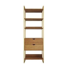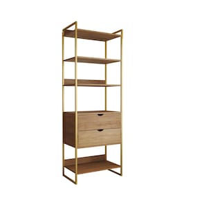 Closet Solteiro Estilo Industrial Loft 1 Módulo com Gaveta Amêndoa Base Dourada - Marrom