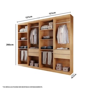 Dimensões de cada Módulo: Altura: 200 cm Largura: 121 cm Profundidade: 46,5 cm Peso: 98,68 Kg