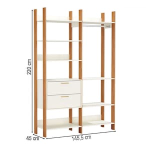 O(a) Closet Tw403 2 Gavetas 8 Prateleiras 100% Mdf Off White/Freijó/Gold - Dalla Costa é produzido em 100% MDF na escala de brilho Fosco, e possui um grau de dificuldade de montagem: Médio.
