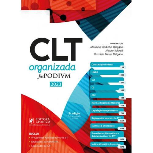Apresentamos com muito orgulho a nova edição da CLT Organizada Juspodivm 2023, coordenada pelos ilustres professores Mauricio Godinho Delgado, Mauro Schiavi e Gabriela Neves Delgado. Um produto totalmente pensado para você que vive o Direito do Trabalho, seja como ofício ou como estudo. A CLT Organizada tem como objetivo auxiliar estudantes e operadores do Direito do Trabalho em suas provas e atividades profissionais. Para tanto, reúne, num único volume, todas as principais legislações relacionadas à matéria. Além das regras constitucionais, leis e decretos, também fazem parte desta obra atos regulamentares do MTE, TST, CODEFAT, ESocial, CSJT, entre outros, e acordos internacionais. Assim, o presente livro torna-se uma fonte completa, rápida, atualizada e confiável de consulta. A obra conta, ainda, com um amplo índice temático unificado desenvolvido com todo cuidado para facilitar a identificação da norma aplicável pelo tema buscado e o manuseio deste exemplar. As remissões são específicas e voltadas para os operadores desta área, com o objetivo de auxiliá-los na interconexão das normas, apontando com segurança a direção a ser tomada pelo raciocínio jurídico de seu usuário.