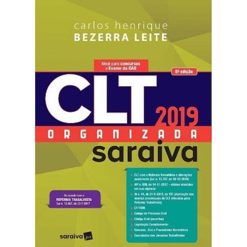 Esta obra, organizada pelo renomado jurista, professor e desembargador Carlos Henrique Bezerra Leite, tem por objetivo propiciar ao leitor uma consulta rápida, objetiva, segura e completa das fontes normativas que podem ser utilizadas para a resolução de provas e questões de concursos públicos e do Exame de Ordem da OAB, como também para a atuação profissional e ou acadêmica relacionada à interpretação e aplicação do Direito do Trabalho e do Direito Processual do Trabalho no Brasil. Últimas atualizações no texto da CLT: - Lei n. 13.467, de 13-7-2017 (Reforma Trabalhista); - Lei n. 13.660, de 8-5-2018 (Pagamento dos honorários de intérprete judicial). Destaques da edição: - Aplicação das normas processuais previstas na CLT Reforma Trabalhista (Instrução Normativa n. 41, de 21-6-2018); - Aprendiz (Decreto n. 9.579, de 22-11-2018); - Trabalho temporário no Mercosul (Decreto n. 9.499, de 10-9-2018); - Análise de Benefícios com Indícios de Irregularidade (MP 871, de 18-1-2019 alterações nas Leis Previdenciárias).