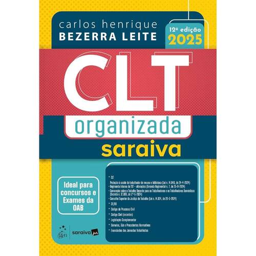 Esta CLT, já em décima segunda edição com sucessivas tiragens, é fruto da sólida e reconhecida experiência do organizador na pesquisa, no magistério, na advocacia e na magistratura laboral e, em curto prazo, tornou-se referência no mercado editorial.Indispensável aos alunos de graduação e pós-graduação em Direito, a obra vem sendo largamente adotada e indicada por professores aos candidatos do Exame de Ordem da OAB e de concursos públicos na área trabalhista.Além disso, passou a ser utilizada por advogados, magistrados, membros do Ministério Público, auditores-fiscais, assessores, servidores e demais profissionais que necessitam de consultas rápidas, objetivas e seguras da legislação e jurisprudência sumulada pertinentes ao Direito do Trabalho e Direito Processual do Trabalho.A obra contém índices diferenciados que facilitam a localização dos textos legais aplicáveis na seara trabalhista, da legislação complementar e das súmulas vinculantes, súmulas do STF e do STJ (em matéria trabalhista), súmulas, orientações jurisprudenciais, instruções normativas e precedentes normativos do TST.O texto da CLT contém, ainda, notas cuidadosamente selecionadas pelo organizador que remetem o leitor às principais fontes normativas internacionais e do ordenamento jurídico brasileiro e aos verbetes da jurisprudência dos Tribunais Superiores em matéria trabalhista.Carlos Henrique Bezerra Leite