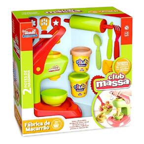 Máquina De Massas Brinquedo Modelar Massinha Fabrica de Macarrão e de Pizza Club Massa com 6 MassinhasA Máquina de Massas Brinquedo Club Massa é perfeita para transformar a brincadeira com massinha em uma divertida fábrica de macarrão e pizza! Com design colorido e interativo, o brinquedo permite que as crianças modelem diferentes tipos de massas, como espaguete, talharim e coberturas de pizza, estimulando a criatividade e o faz de conta. Acompanha acessórios variados para cortar, prensar e decorar, tornando a brincadeira ainda mais realista. Ideal para desenvolver a coordenação motora, a imaginação e a interação entre os pequenos, é uma excelente opção de presente educativo e lúdico.Especificações:Fabricante: Usual BrinquedosCor: Vermelho e VerdeInclui Massinha; SimModelo: Máquina de Massas Club MassaComposição: Plástico (PP)Indicado para crianças maiores de 3 anosConteúdo do pacote:1 x Máquina de Massas6 x Potes de Massinhas