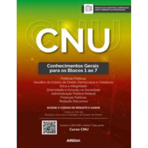 Apostila Preparatória para o Concurso Nacional Unificado - CNU - Conhecimentos Gerais para os Blocos 1 ao 7 Conquiste a Estabilidade com o AlfaCon: Seu Parceiro de Sucesso Nutre o sonho da estabilidade de um emprego público? O primeiro passo é construir uma base sólida de estudos. O AlfaCon oferece um material meticulosamente elaborado por professores especialistas, proporcionando eficácia e confiança para enfrentar as exigentes provas de concursos públicos. Concurso Nacional Unificado - CNU - Conhecimentos Gerais para os Blocos 1 ao 7 EDITAL: Aberto ÓRGÃO: Concurso Público Nacional Unificado TOTAL DE VAGAS: 5.984 Informações Importantes: BANCA: Site Governo Federal INSCRIÇÃO: 19/01/2024 a 09/02/2024 VALOR DA INSCRIÇÃO: R$ 90,00 PROVA: 05/05/2024 - MANHÃ e TARDE QUESTÕES: 70, Múltipla Escolha (05 alternativas) REDAÇÃO: Sim Faça parte do time dos aprovados com o AlfaCon. Adquira seu curso e inicie a transformação em sua vida!