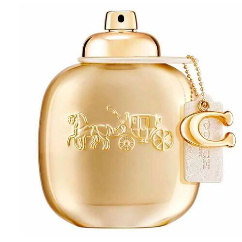 O Coach Gold Parfum - Perfume Feminino 90ml combina frescor especiado com notas florais e gourmand, ideal for momentos especiais, encontros românticos e climas quentes. Com fórmula vegana e frasco dourado com design de carruagem, é uma fragrância radiante e elegante para a mulher moderna.