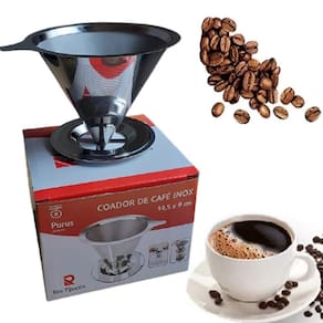 Coador Filtro Café Aço Inox Sem Uso De Filtro 14,5 cm x 9 cm Coador de Café Aço Inox medindo 14,5 cm x 9 cm sem uso de filtros.