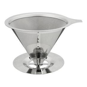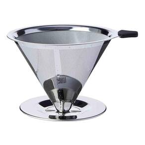 Filtro de dupla camadas em aço inox - Para café chá Tamanho Médio 80 Gramas de café em pó. Vantagens do produto - Filtro de café inovador em aço inoxidável. - Dispensa uso de suporte e filtros de papel. - Totalmente fabricado em aço inoxidável com camada dupla. - O café preparado terá acentuado seu aroma por não utilizar filtros de papel que retém óleos e aromas. - Pode ser apoiado diretamente sobre garrafas térmicas, xícaras ou outros recipientes. - Saudável, ecológico, econômico. Material: aço inoxidável Tipo: Malha dupla Diâmetro superior: 11 cm Diâmetro da base: 8,8 cm Altura: 8 cm Características: - Fabricado em material de aço inoxidável, resistente, durável e fácil de limpar. - O filtro reutilizável elimina o uso de papel, economiza tempo e dinheiro. - O design de malha permite que o café ou chá flua rapidamente e facilmente sem que nenhum grão de café seja lançado em seu copo. - Use-o sobre uma caneca de café, garrafa térmica ou copo. - Dicas: apoie o filtro sobre uma garrafa térmica, adicione a quantidade desejada de pó de café e despeje água quente sem ferver . Seu café pronto, com aromas e óleos naturais presentes, sem uso de papel e suporte de plástico.
