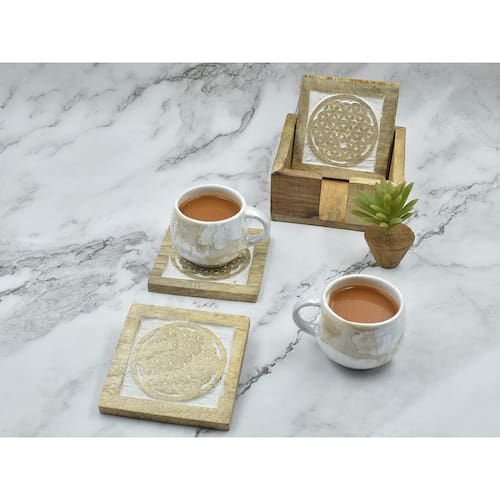 - Presentável — O conjunto de 4 porta-copos vem bem embalado em uma caixa de madeira de manga. Um presente perfeito para boas-vindas ou anfitriã, além de chás de casamento e aniversários!