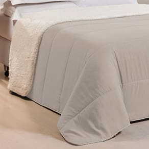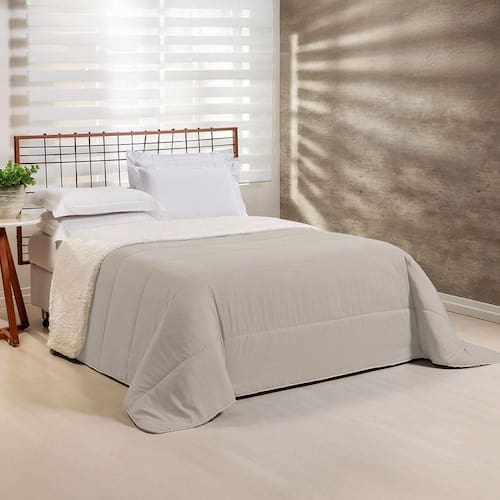 Estilo que Renova: Com um lado em Percal e outro com a textura da Sherpa, você pode mudar a decoração do quarto facilmente, criando um ambiente moderno e convidativo.