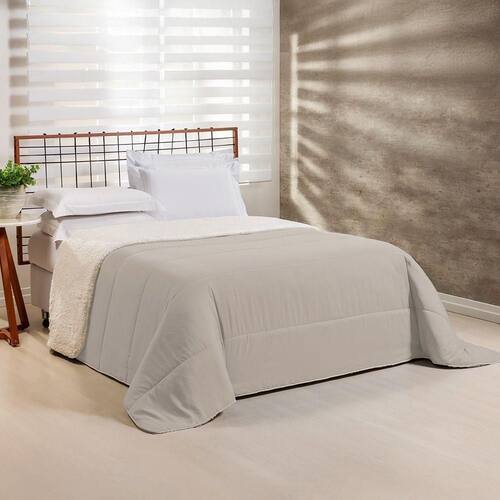Estilo que Renova: Com um lado em Percal e outro com a textura da Sherpa, você pode mudar a decoração do quarto facilmente, criando um ambiente moderno e convidativo.