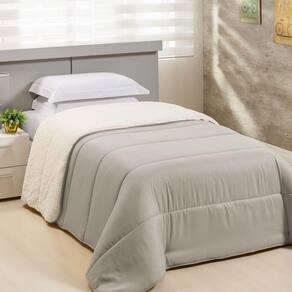 Estilo que Renova: Com um lado em Percal e outro com a textura da Sherpa, você pode mudar a decoração do quarto facilmente, criando um ambiente moderno e convidativo.