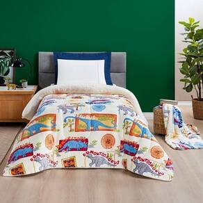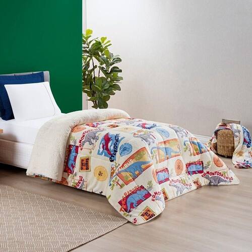 Coberdrom Bouti Kids Solteiro 01 Peça - Dino O Coberdrom Bouti Kids é confeccionado com Sherpa (toque de pele de carneiro) de um lado e manta flannel estampado do outro lado, muito fofinho e quentinho para garantir boas noites de sono. Produto composto por: 01 Coberdrom 2,40m x 1,50m Composição: Tecido Sherpa: 100% PoliésterEnchimento: 100% PoliésterManta Microfibra: 100% Poliéster