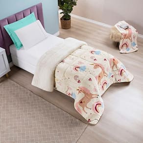 Coberdrom Bouti Kids Solteiro 01 Peça - Unicórnio O Coberdrom Bouti Kids é confeccionado com Sherpa (toque de pele de carneiro) de um lado e manta flannel estampado do outro lado, muito fofinho e quentinho para garantir boas noites de sono. Produto composto por: 01 Coberdrom 2,40m x 1,50m Composição: Tecido Sherpa: 100% PoliésterEnchimento: 100% PoliésterManta Microfibra: 100% Poliéster
