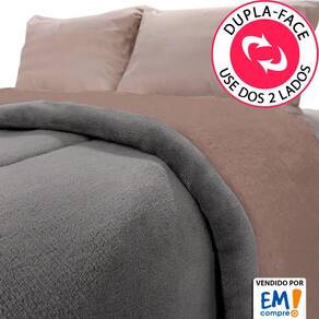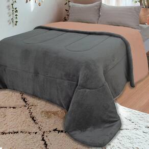 Coberdrom Casal Edredom Dupla-face Soft Aveludado e Sherpa tipo Lã 240x190cm - BF Colchões - Cinza