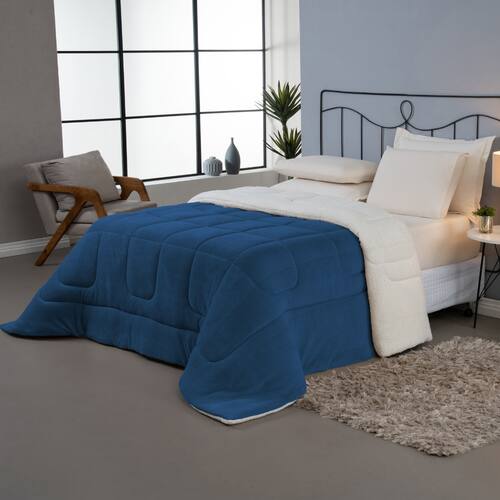 INFORMAÇÕES ESPECÍFICAS: - Acabamento costura refilado, trazendo mais segurança na sua lavagem, não deixando a manta (enchimento) soltar; - Dupla Face, de um lado material manta soft e do outro sherpa pele de carneiro, podendo usar as duas opções; - Disponível em 4 opções de cores, é ideal para compor a decoração do seu quarto, podendo facilmente combinar; - Ótima opção para dias mais frios do ano por ser bem aconchegante, quente e fofo.