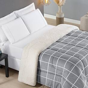 Coberdrom Cobertor Brooklyn Queen Sherpa Manta Flannel Quadriculado - Cinza Apostando no moderno e sofisticado a Coleção Brooklyn traz como protagonista as estampas quadriculadas, um verdadeiro mimo para aquecer seu inverno. Confeccionado em Tecido Sherpa e Manta Flannel Microfibra, sensação de Toque de Lã de Carneiro o que proporciona um toque suave e extremo conforto para suas noites de sono. Inspire-sePontos Fortes:- Manta Flannel e Sherpa- Toque suave e macio- Super QuentinhoContêm na embalagem:01 Coberdrom 2,40m comprimento x 2,20m largura Os portas travesseiros NÃO acompanham o produto.Composição:Tecido Sherpa: 100% PoliésterEnchimento: Manta 100% PoliésterManta Microfibra: 100% PoliésterAs fotos são meramente ilustrativas. As cores podem variar de acordo com cada monitor e não representam todas as peças que compõem a descrição do produto. Fique atento à descrição do produto.