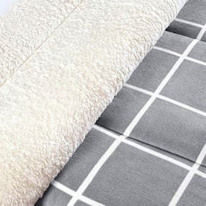 Coberdrom Cobertor Comfort Casal King 01 Peça Tecido Sherpa Manta Flannel Quadriculado - Cinza - Única