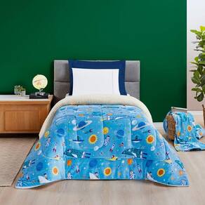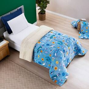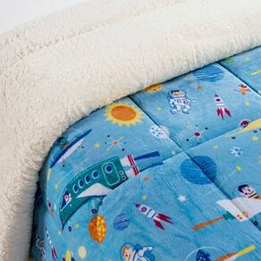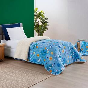 Coberdrom Fantasy, produto confeccionado em Tecido Sherpa e Manta Flannel Microfibra, sensação de Toque de Lã de Carneiro. Opção perfeita para decorar e se aquecer no inverno. Em estampas temáticas e divertidas que vão complementar a decoração do quarto do seu pequeno.