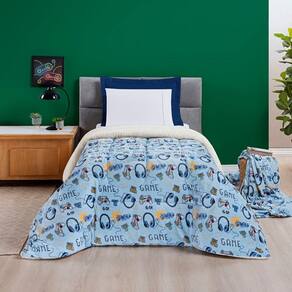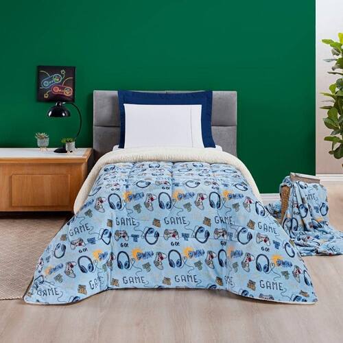 Coberdrom Cobertor Fantasy Solteiro Infantiil Sherpa Manta Toque Lã De Carneiro - Games